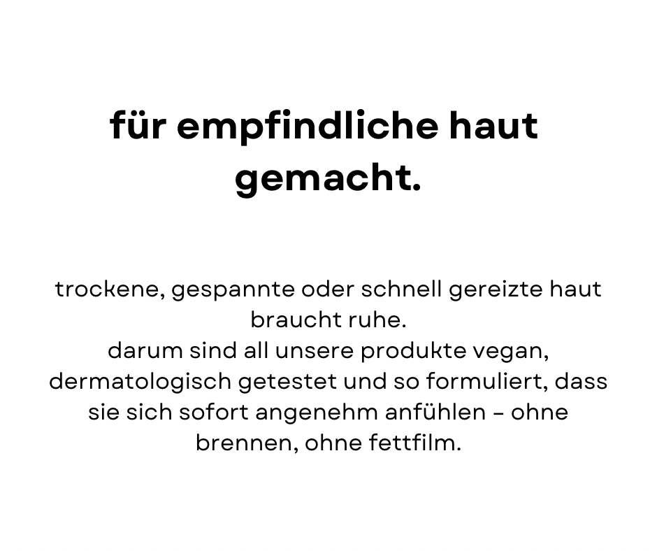 Absolut. Alle Produkte sind frei von Duftstoffen, Parabenen, Mikroplastik, Cortison und synthetischen Konservierungsmitteln – ideal für empfindliche, allergische und reaktive Haut.
